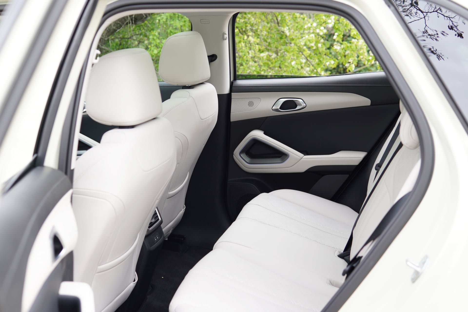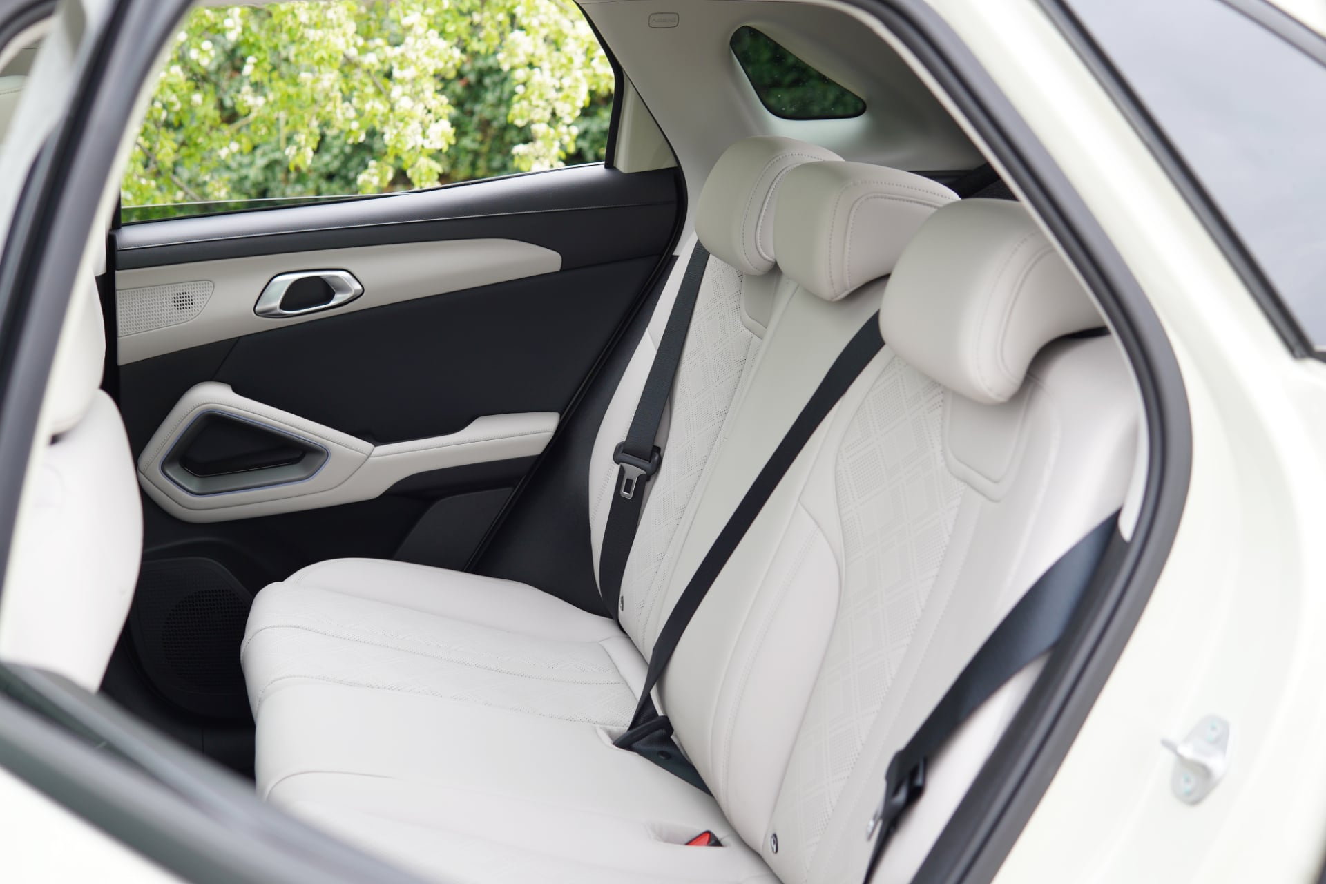 Contrairement à d’autres modèles sur le marché, y compris chez BYD, la visibilité sur l’avant depuis les sièges arrière est très bonne. Le dossier des sièges avant n’est pas trop massif et les assises sont légèrement surélevées pour offrir une meilleure vision sur l’avant. Les fenêtres sont aussi très larges et les vitres se baissent presque totalement. On ne se sens pas enfermés dans cette BYD Atto 2.