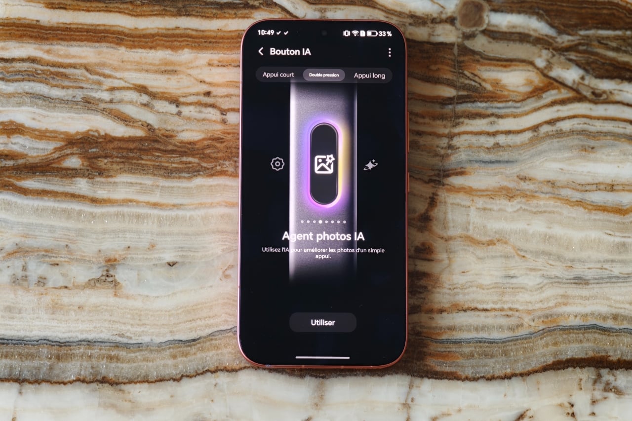 Au niveau des boutons, la filiation avec une certaine marque californienne est toujours de mise. Sous celui de volume et de verrouillage, trône fièrement un troisième larron. Déjà aperçu sur le Magic 8 Pro, il permet via un système d’appui (court, double pression ou long) de lancer l’appareil photo ou d’accéder aux fonctions intelligentes de MagicOS. Contrairement au bouton Action d’Apple, il ne se personnalise pas librement et se cantonne à la photo ou l’IA.