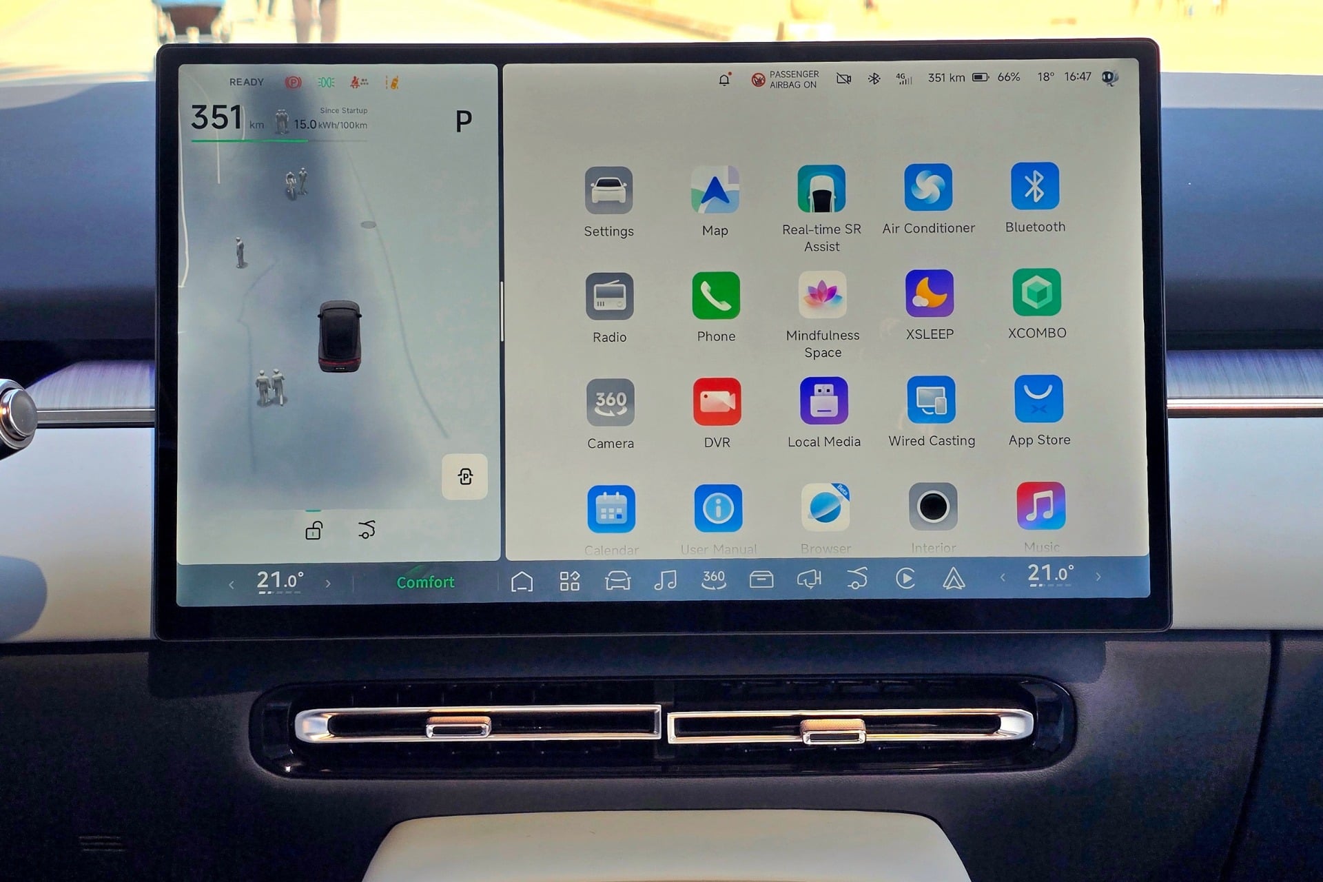 La P7+ réitère en revanche l’exploit du G6 sur le rapport prix/équipement, qui est extra. Notre modèle Grande Autonomie inclut beaucoup trop de choses pour toutes les citer. Parmi les plus remarquables, on notera néanmoins les jantes de 20 pouces, les portières à fermeture assistée, le rétroviseur numérique, l’affichage des angles morts dans l’affichage tête-haute, la sellerie en cuir Nappa, la sonorisation à 20 haut-parleurs ou encore la clé numérique avec stationnement à distance.