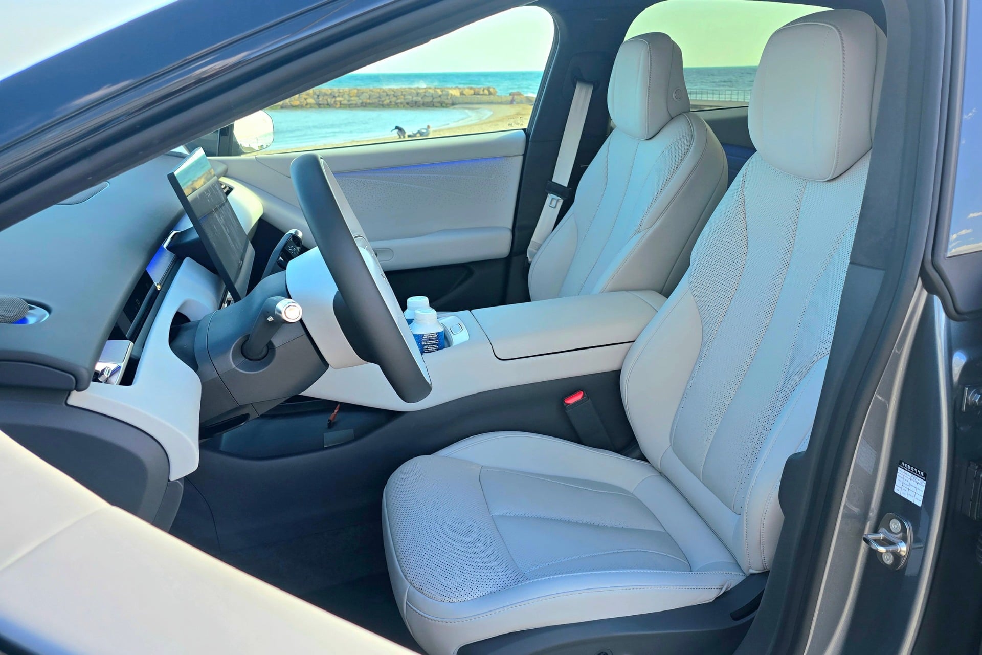 Le souci monumental pour les autres, c’est que cet attirail est livré à un prix vraiment serré. 45 990 € pour l’entrée de gamme et 49 990 € pour la version Grande Autonomie, c’est terriblement bien placé. Un modèle équivalent européen peut coûter sans problème le double, avec un équipement et des capacités de recharge pouvant tous deux être inférieurs… Un modèle Performance de 503 ch est aussi proposé pour 53 990 €. Mais c’est selon nous inutile, à moins d’avoir un besoin pressant pour les quatre roues motrices…