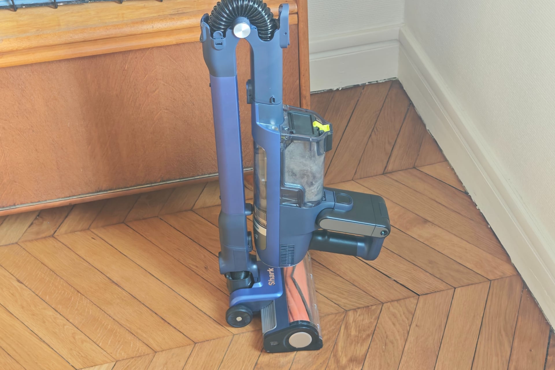 Là où encore de nombreux modèles récents, comme le Narwal V40 sorti cette année, imposent des sacs consommables à racheter régulièrement, Shark a fait le choix du sans sac. La marque annonce 45 jours sans nécessité de vider le bac. Dans la réalité, tout dépendra évidemment de votre fréquence d’utilisation.