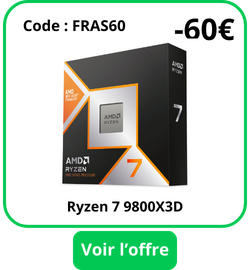 - Ryzen 7 9800X3D à 399 € au lieu de 459 €