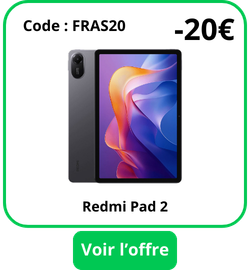 - Redmi Pad 2 à 132 € au lieu de 152 €