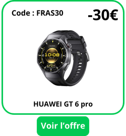 - HUAWEI GT 6 pro à 229 € au lieu de 259 €