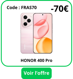 - HONOR 400 Pro à 469 € au lieu de 539 €