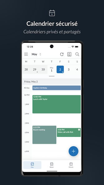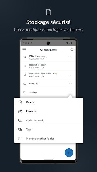 On peut créer des alias, utiliser un domaine personnalisé et organiser la boîte avec des dossiers et des étiquettes. L’application propose aussi un espace de stockage pour les documents. Il devient possible de partager des fichiers de manière sécurisée au sein de groupes ou d’espaces de travail. Le calendrier intégré aide à gérer les rendez-vous et les invitations. Les contacts se synchronisent facilement. L’accès via POP, IMAP et SMTP permet de connecter des clients tiers comme Outlook ou Thunderbird.