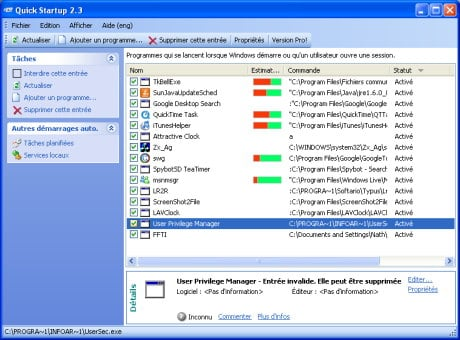 Le logiciel permet ensuite de modifier facilement le comportement des applications au démarrage. Il est par exemple possible de désactiver, supprimer ou ajouter de nouvelles entrées en quelques clics. Quick Startup offre également la possibilité de retarder le lancement de certains programmes. Cette fonction évite la surcharge des ressources dès l’ouverture de session et améliore la fluidité du système.