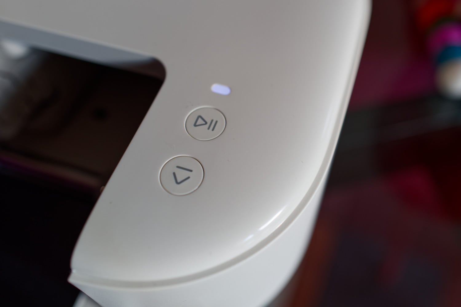 La Cricut Joy 2 n’est pas qu’une simple mise à jour esthétique. Elle conserve le format « poids plume » de moins d’un kilo que l’on peut ranger dans un tiroir ou glisser dans un sac de voyage du modèle précédent, et bénéficie enfin de la fonction « Imprimer puis Découper ». Présente sur les autres gammes, elle apporte un confort particulièrement bienvenu dans son usage. Pour cela, Cricut a dû revoir de fond en comble son châssis minuscule afin de caser un capteur optique haute résolution.