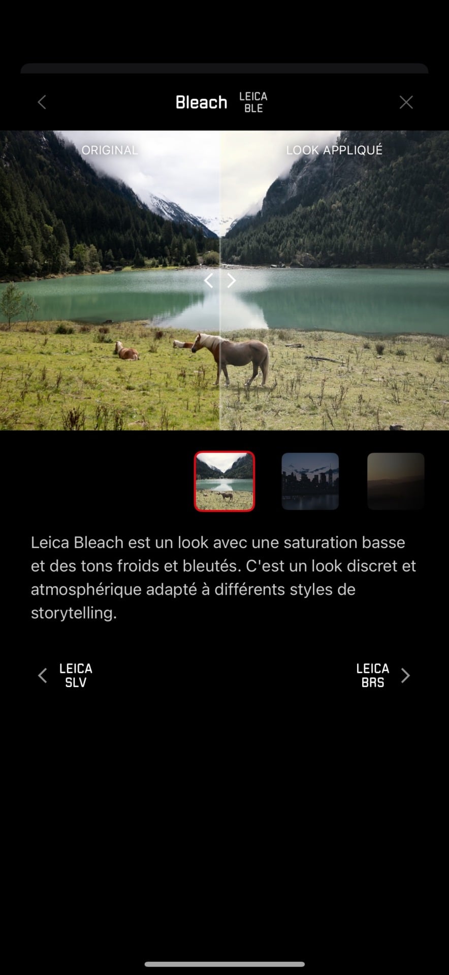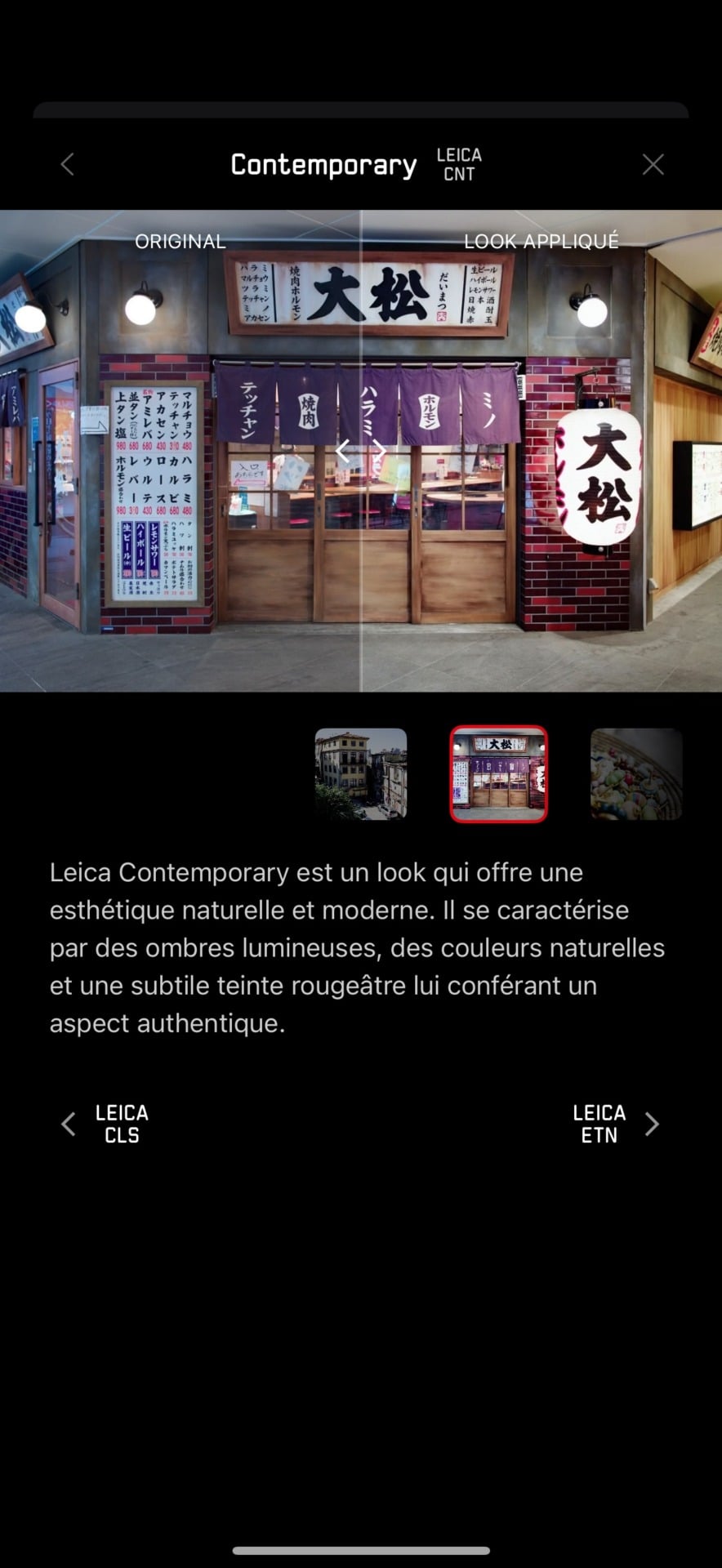 La version de base de Leica LUX est gratuite, mais les fonctionnalités intéressantes (simulations d’objectifs avancées, certains Looks) nécessitent la version Pro, facturée 7,99 euros par mois ou 79,99 euros par an. L’achat du grip inclut un an d’abonnement Pro, ce qui revient à payer la poignée « seulement » 230 euros si on comptabilise la valeur de l’abonnement offert. Cette « rente » annuelle, versée à Leica, explique en grande partie la non-compatibilité de la poignée avec d’autres apps. Il n’y a pas de petits profits…