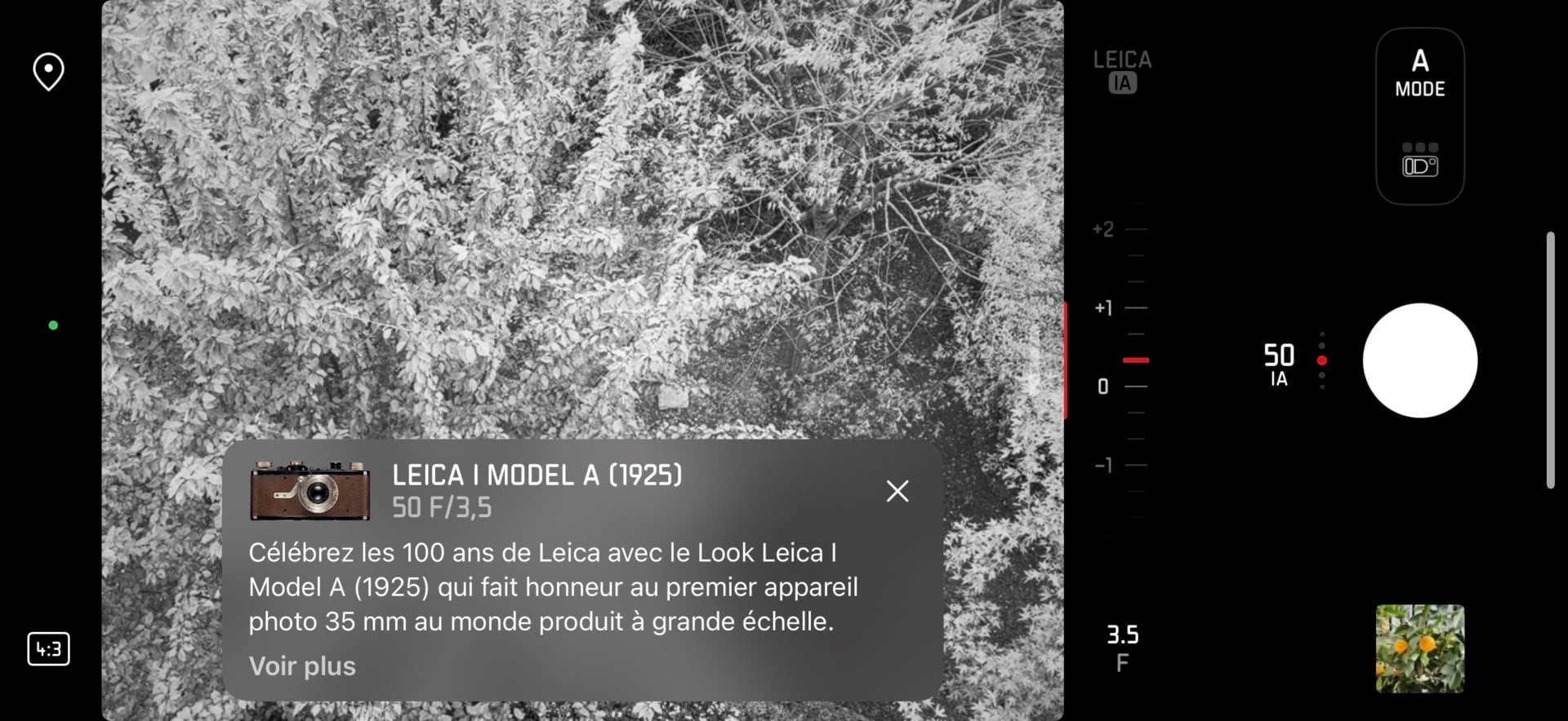 Cela dit, l’app Leica LUX est très bien fichue. Le mode « ouverture » crée le rendu d’objectifs Leica sur les fichiers HEIF produits par l’iPhone, propose des résultats étonnants. Les bokeh simulés du Noctilux-M ou du Summilux-M ne sont évidemment pas ceux des vrais verres, mais ils ont une personnalité que les modes portraits d’Apple n’ont jamais eue. Le mode Photo, lui, permet de travailler en DNG brut, avec un contrôle manuel complet. Vous l’aurez compris : la qualité des images produites est tout bonnement excellente. Je peux même ajouter un filigrane Leica, garantissant que l’image a été prise par un dispositif certifié par le constructeur allemand.